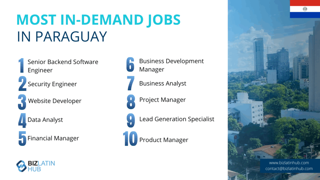 The biggest employer in Paraguay currently is the agricultural sector. But in urban areas, the most sought-after positions are in the tech sector – jobs such as software developers, programmers, full-stack developers, engineers, etc. – so much so that demand outpaces supply.