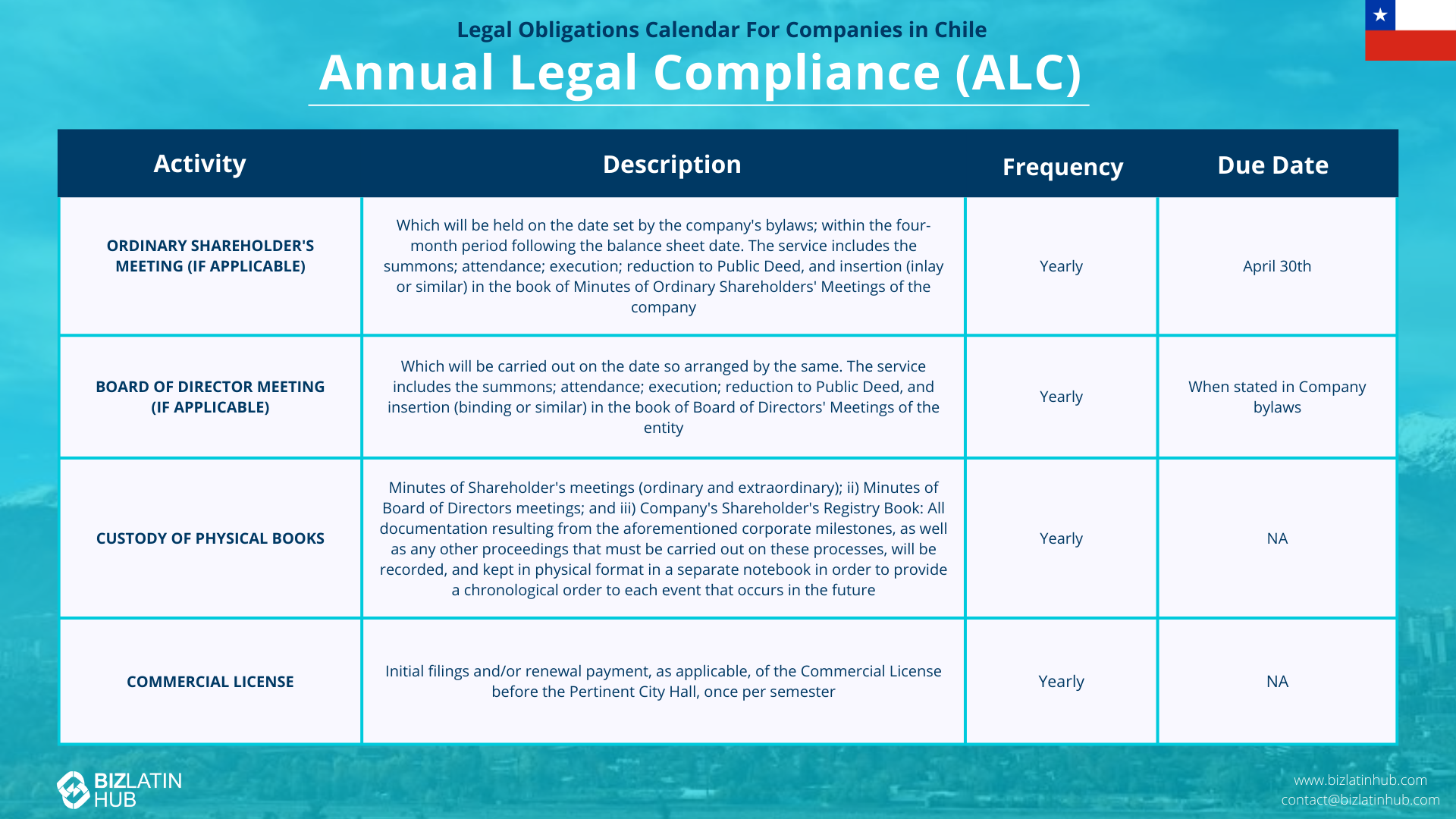Biz Latin Hub can help with corporate compliance in Chile