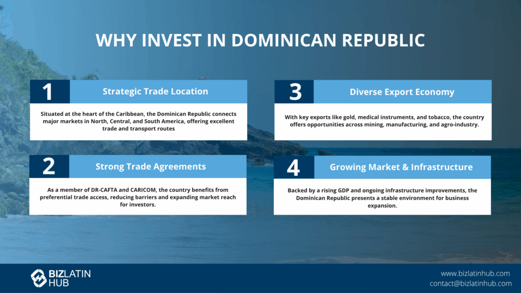 Doing business in the Dominican Republic is particularly attractive due to its pro-investment policies, simplified incorporation process, and strong legal protections for foreign-owned entities.