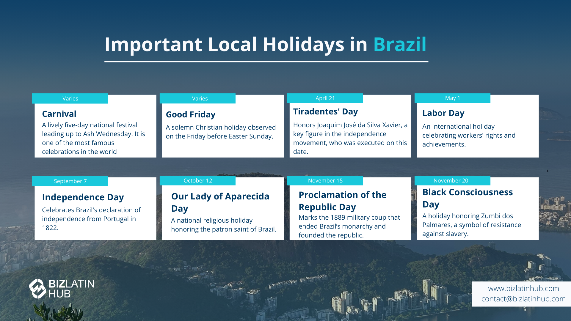 Understanding the business culture in Brazil is easy once you are used to it, but can be intimidating for newcomers. That’s where Biz Latin Hub steps in. We can help you set up shop in the country while you acclimatize to the way of doing things. Better yet, our array of back-office services means we offer ongoing in-country support at any stage of the business life cycle, including LLC formation in Brazil if necessary.