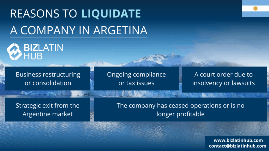 What are the reasons to liquidate a company in Argentina? | These vary, but the key point is to stay compliant and in good standing with the authorities. |