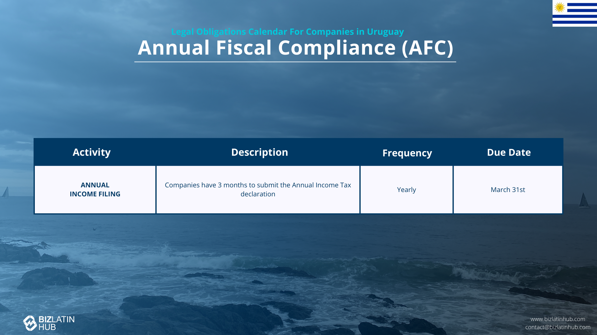 Companies in Uruguay have 3 months to submit their annual income tax declaration by the deadline of March 31st.