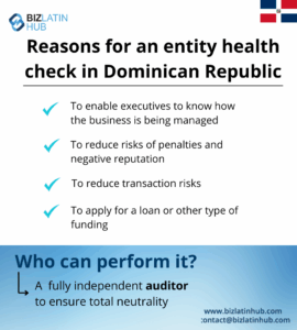 Conducting an entity health check helps businesses understand their compliance status, reduce risks of tax penalties and reputational harm, prepare for mergers or acquisitions, and ensure they meet evolving Dominican regulations.