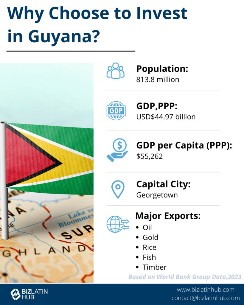Get in contact with Biz Latin Hub – our team of local experts and professionals can support you and your business venture in Guyana with our services ranging from legal and commercial representation to market entry. Feel free to contact us now for personalized information.