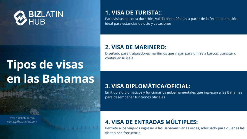 Viajar a las Bahamas promete sol, arena y experiencias inolvidables. Y para quienes estén considerando crear una empresa en las Bahamasun visado de larga duración puede ser una buena idea. Las Bahamas tienen unos criterios de entrada específicos que varían en función de tu nacionalidad y del propósito de tu visita. Esta guía describe las principales opciones para visitantes, trabajadores a distancia, empleados e inversores que deseen entrar y residir en las Bahamas.