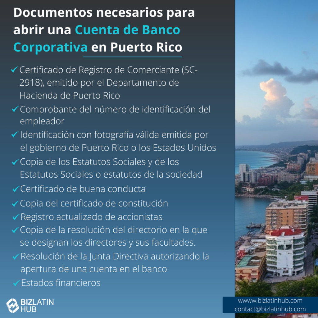 Biz Latin Hub puede ayudarte a abrir una cuenta bancaria corporativa en Puerto Rico