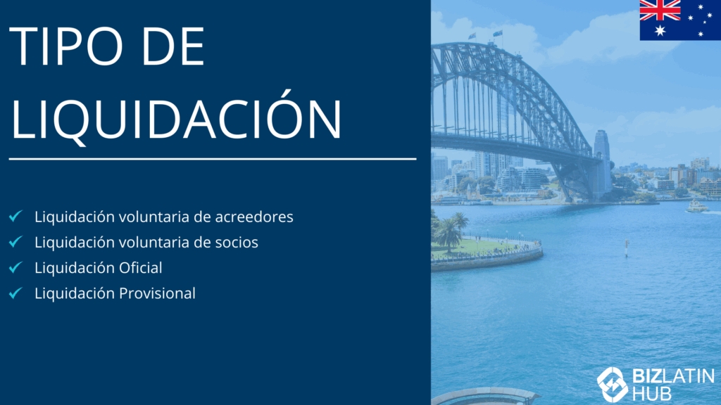 Hay cuatro tipos básicos para liquidar tu empresa en Australia: