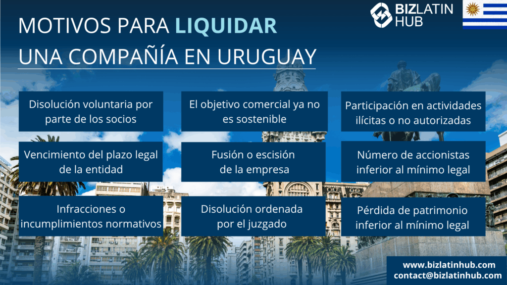 Las empresas en Uruguay deben identificar una causa de disolución, un acuerdo social o una resolución judicial para liquidarse.