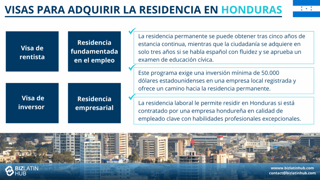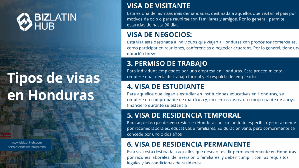 ¿El visado de negocios te permite trabajar en Honduras? | Un visado de negocios es para actividades temporales y no permite trabajar. |