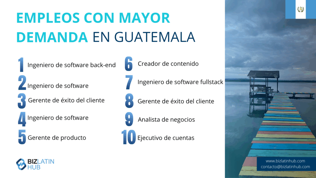 Para satisfacer la creciente demanda, muchas empresas recurren a los servicios de contratación profesional que ofrece Guatemala para acelerar la contratación y garantizar el cumplimiento. Para puestos especializados o ejecutivos, muchas empresas confían en los servicios de búsqueda de personal que ofrecen las empresas con sede en Guatemala para encontrar candidatos de alto nivel.