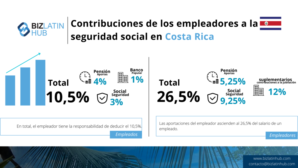 ¿Qué porcentaje del salario de un empleado se cotiza a la seguridad social en Costa Rica? | Las cotizaciones totales del empresario rondan el 26% del salario bruto de un trabajador. |