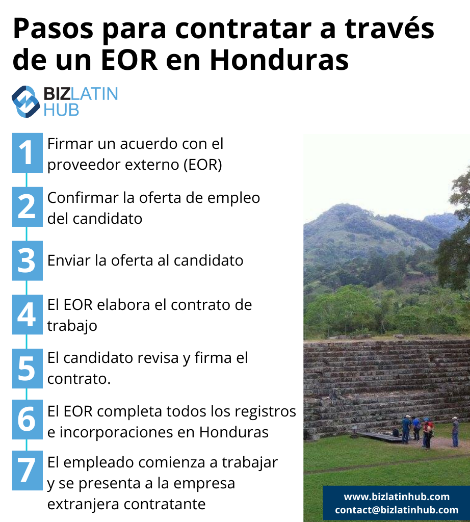 El proceso de contratación a través de un EOR en Honduras es claro y sigue estos pasos: