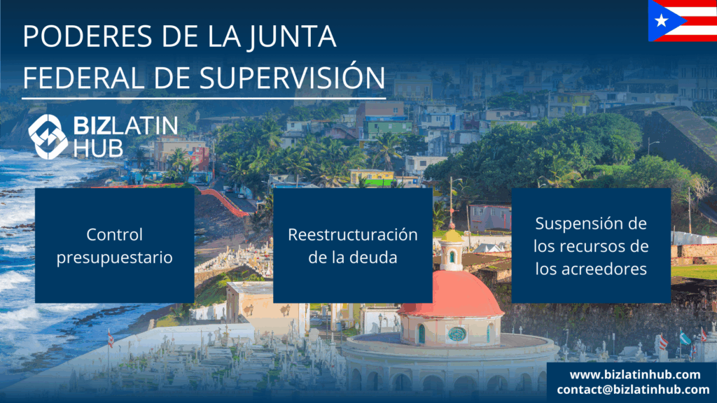 PROMESA permite a la Junta imponer una suspensión de los recursos de ejecución de los acreedores. Esto ayuda a reestructurar la deuda de Puerto Rico y de sus entidades públicas en dificultades. Las acciones de la junta tienen como objetivo ayudar a lograr la estabilidad financiera y proteger contra las crisis financieras. Su trabajo es crucial para mejorar el acceso de Puerto Rico a los mercados de capitales y mantener el orden fiscal.