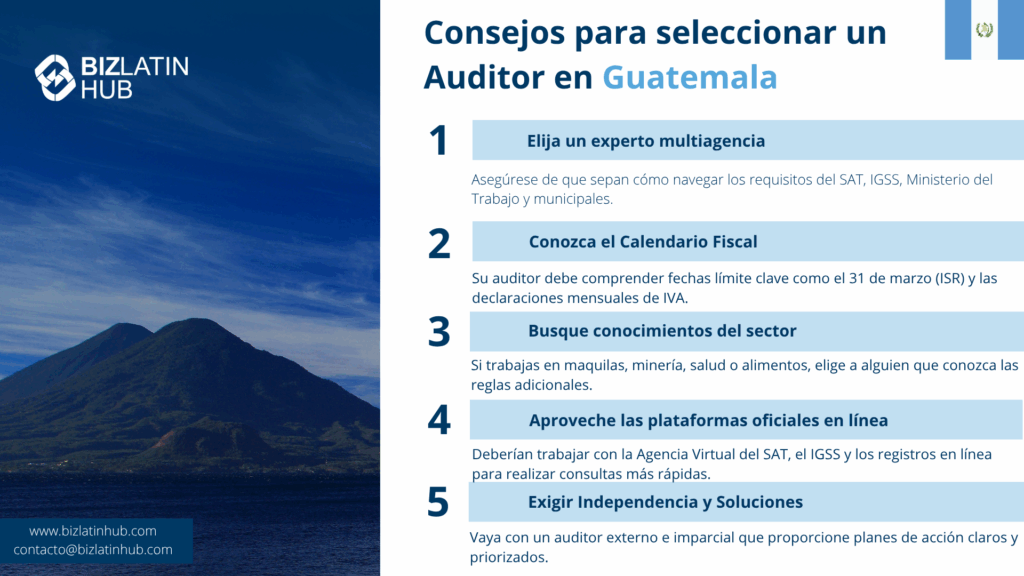 Consejo de experto local: Programa las comprobaciones de la salud de tu entidad en enero para que coincidan con el año fiscal de Guatemala. Este calendario te permite identificar y corregir los problemas antes de la fecha límite del 31 de marzo para la declaración anual de impuestos, evitando complicaciones de última hora.