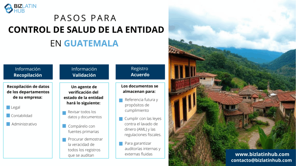 Los controles de salud de las entidades en Guatemala proporcionan una gestión de riesgos esencial para las empresas que operan en esta economía centroamericana en crecimiento. La diligencia debida empresarial periódica en Guatemala identifica las lagunas de cumplimiento antes de que se conviertan en problemas costosos. La inversión en servicios profesionales de verificación aporta valor mediante la evitación de sanciones, la eficacia operativa y la mejora de la credibilidad empresarial.