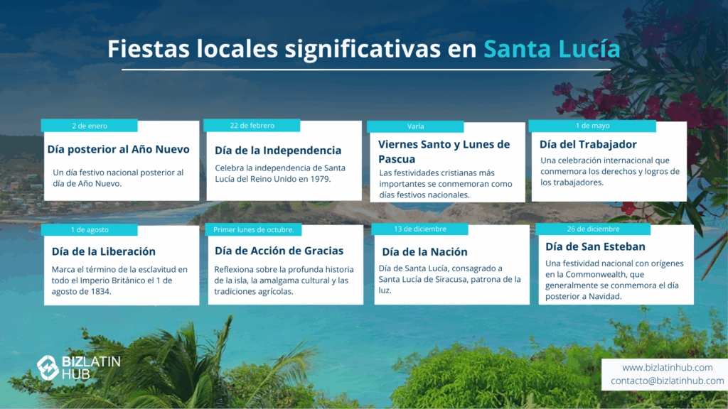 Éxito para creación de empresas en Santa Lucía requiere una comprensión clara de su cultura empresarial. Esta guía proporciona consejos esenciales sobre las prácticas profesionales únicas de la isla para ayudarte a establecer relaciones empresariales sólidas. La cultura empresarial de Santa Lucía valora el respeto y la comunicación clara. La vestimenta formal de negocios es la norma para las reuniones. Un estilo relajado es apropiado para los actos informales. Conocer estas diferencias ayuda a crear confianza con los profesionales locales. Esta guía ofrece consejos esenciales sobre conducta profesional, desde la importancia de la puntualidad hasta los estilos de comunicación adecuados, para ayudarte a entablar relaciones comerciales fructíferas.