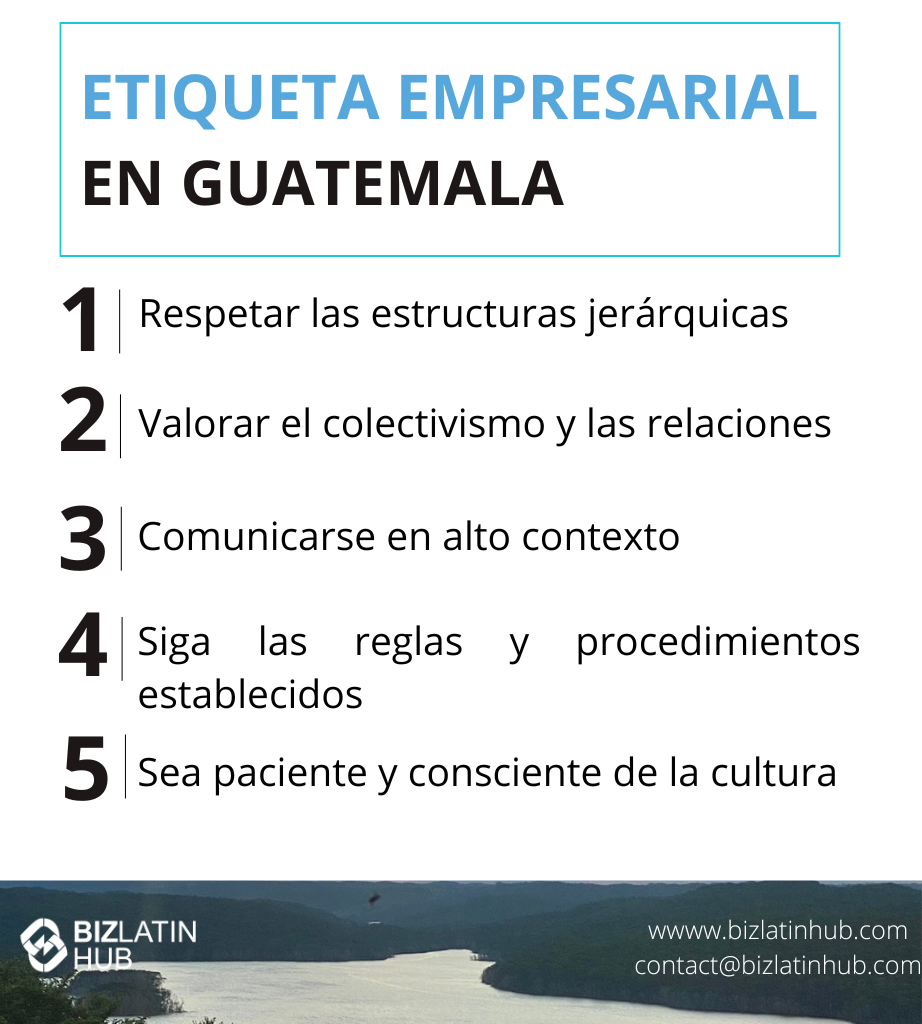 ¿Hasta qué punto es formal la cultura empresarial de Guatemala? | Asegúrate de ser respetuoso con el estatus social y de comportarte de manera formal y profesional. |