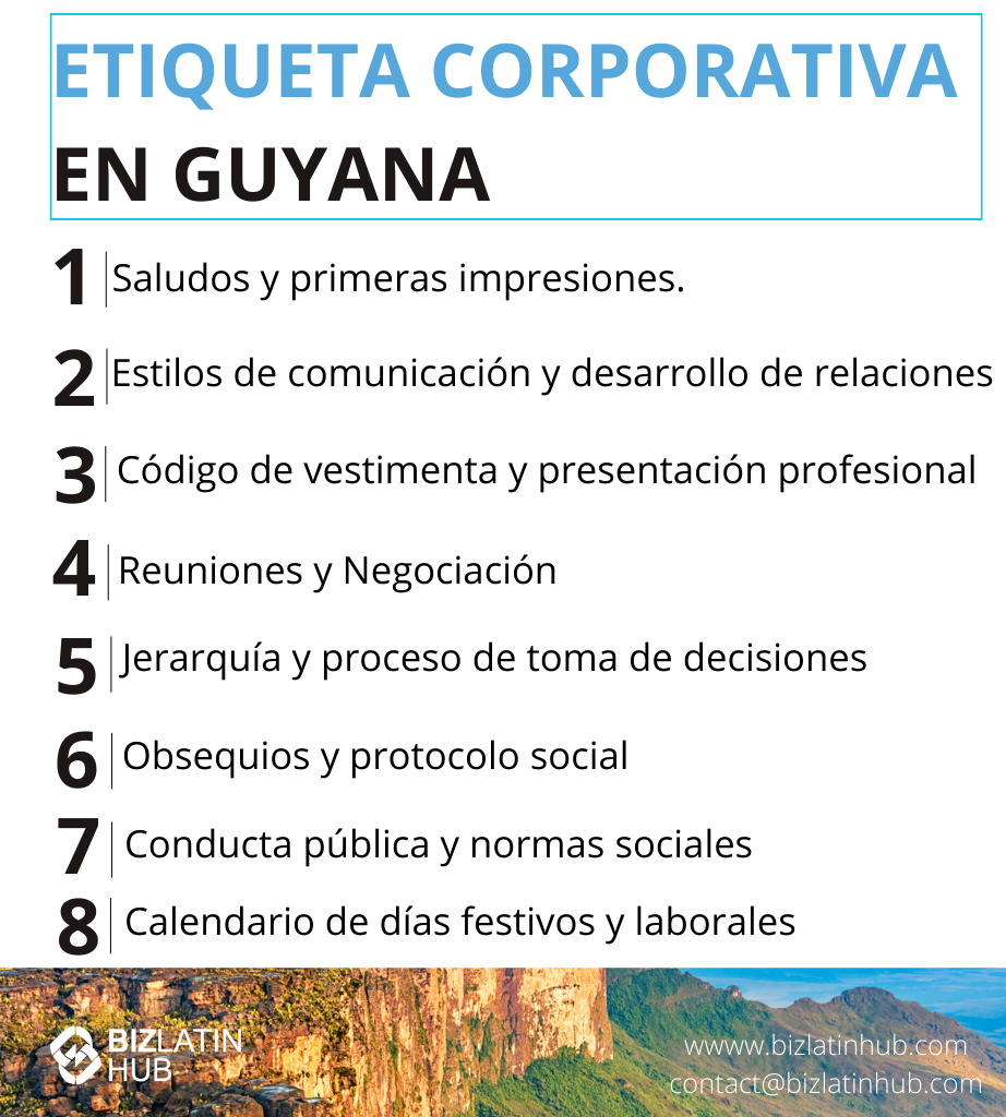 Puntos clave sobre la etiqueta en los negocios en Guyana