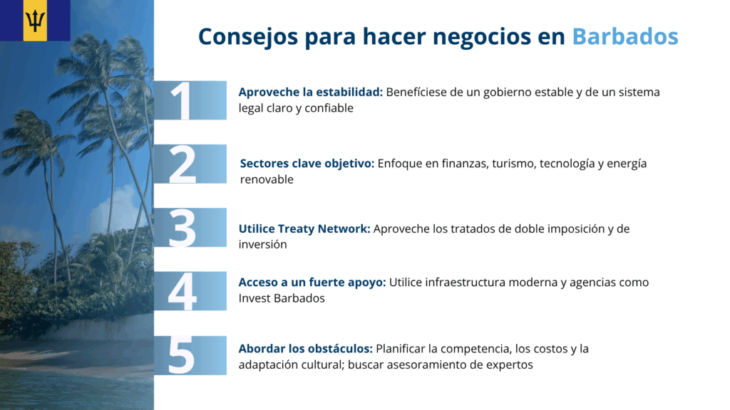 Tratar estos puntos con eficacia te ayudará a entrar en el mercado de Barbados.
