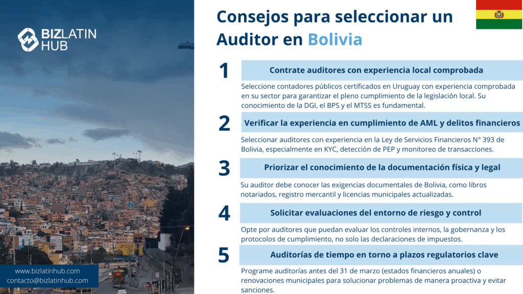Recomendaciones prácticas de expertos locales para las comprobaciones de cumplimiento en Bolivia