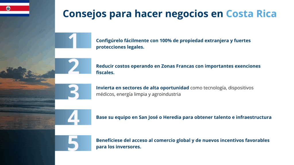 Aprende a poner en marcha y hacer crecer un negocio en Costa Rica en 2025, incluidos los pasos legales, las opciones de constitución y consejos para hacer negocios en una de las economías más estables de Centroamérica.