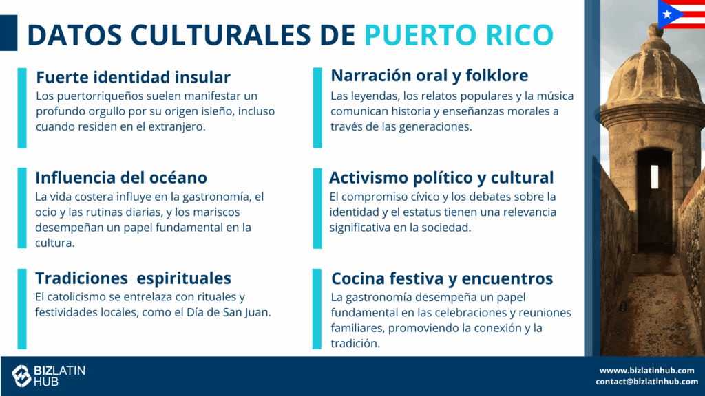 La cultura puertorriqueña hace hincapié en valores como el respeto, la comunicación y la creación de relaciones. Estos elementos guían las prácticas empresariales en la isla. Familiarizarse con estos matices culturales es vital para cualquiera que desee prosperar en los mercados puertorriqueños.