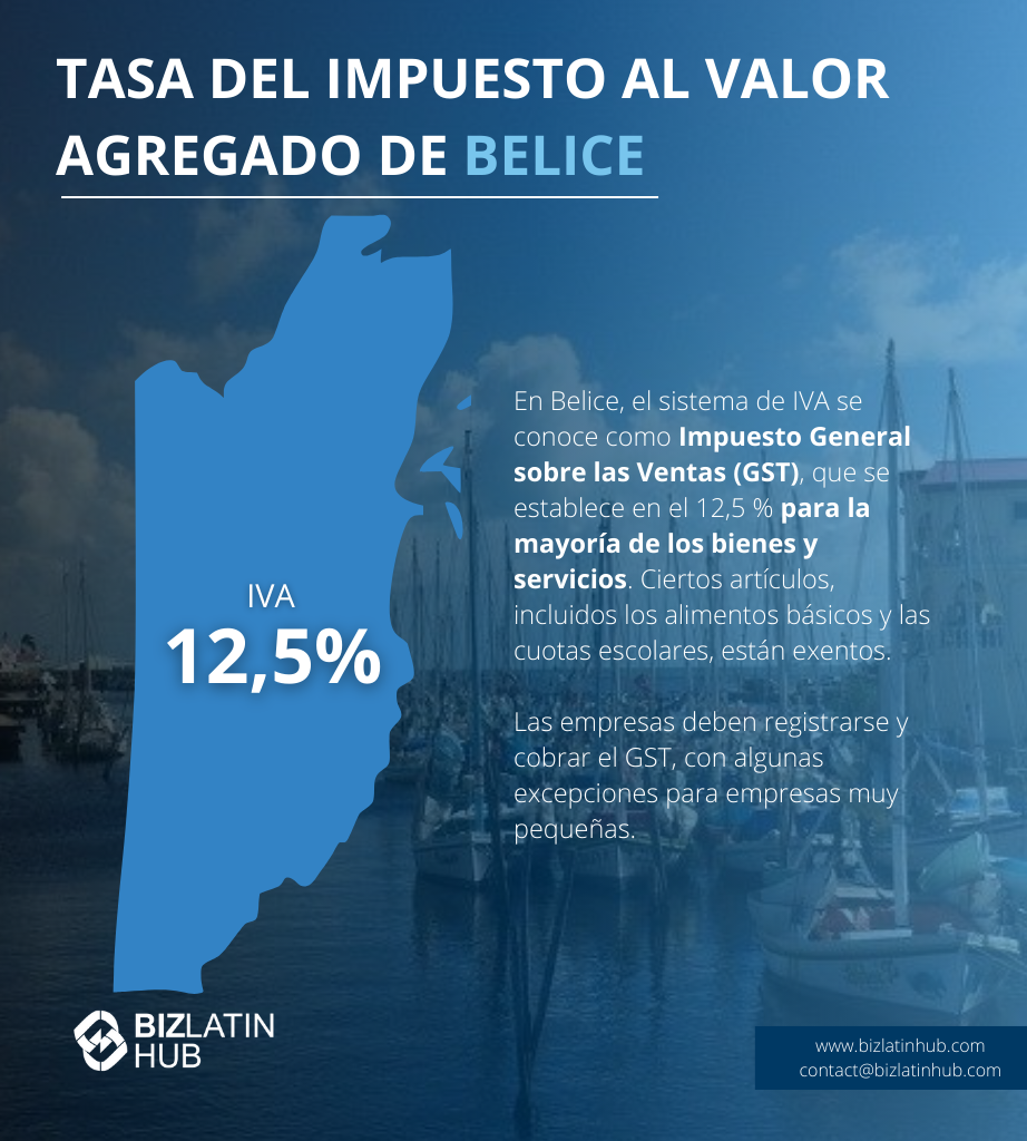Impuesto sobre el Valor Añadido: Belice tiene un tipo de IVA del 12,5%.