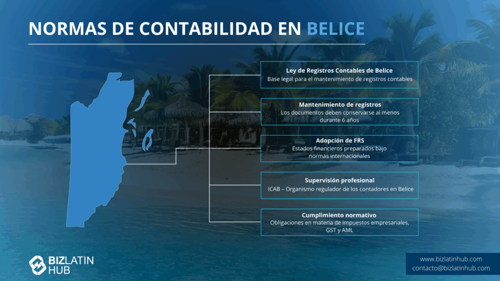Las empresas tienen flexibilidad para preparar sus registros contables y estados financieros de acuerdo con las Normas Internacionales de Información Financiera (NIIF), ya que Belice no se adhiere a una norma o marco contable específico.