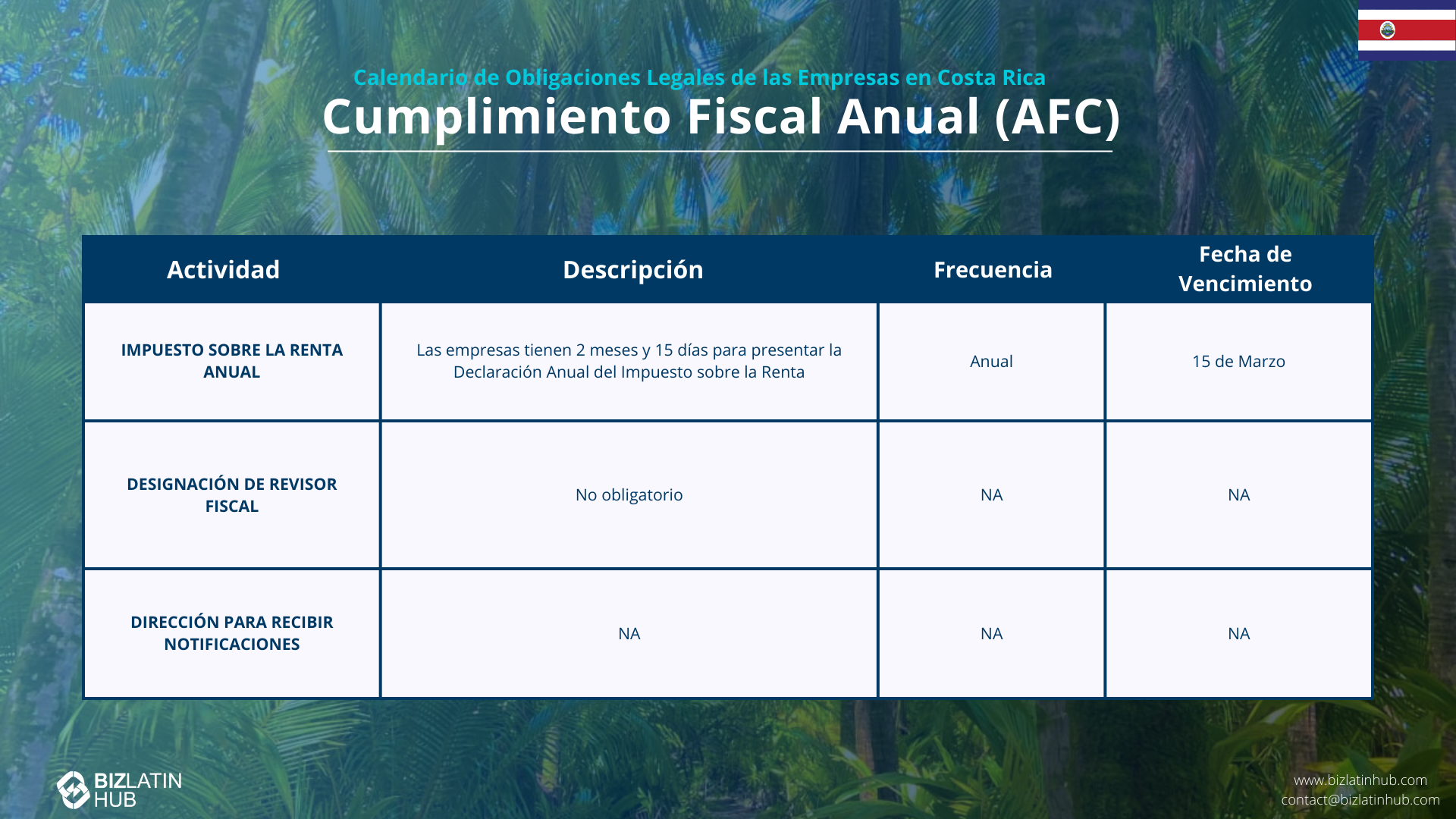 Las empresas de Costa Rica deben presentar su declaración anual del impuesto sobre la renta antes de la fecha límite del 15 de marzo.