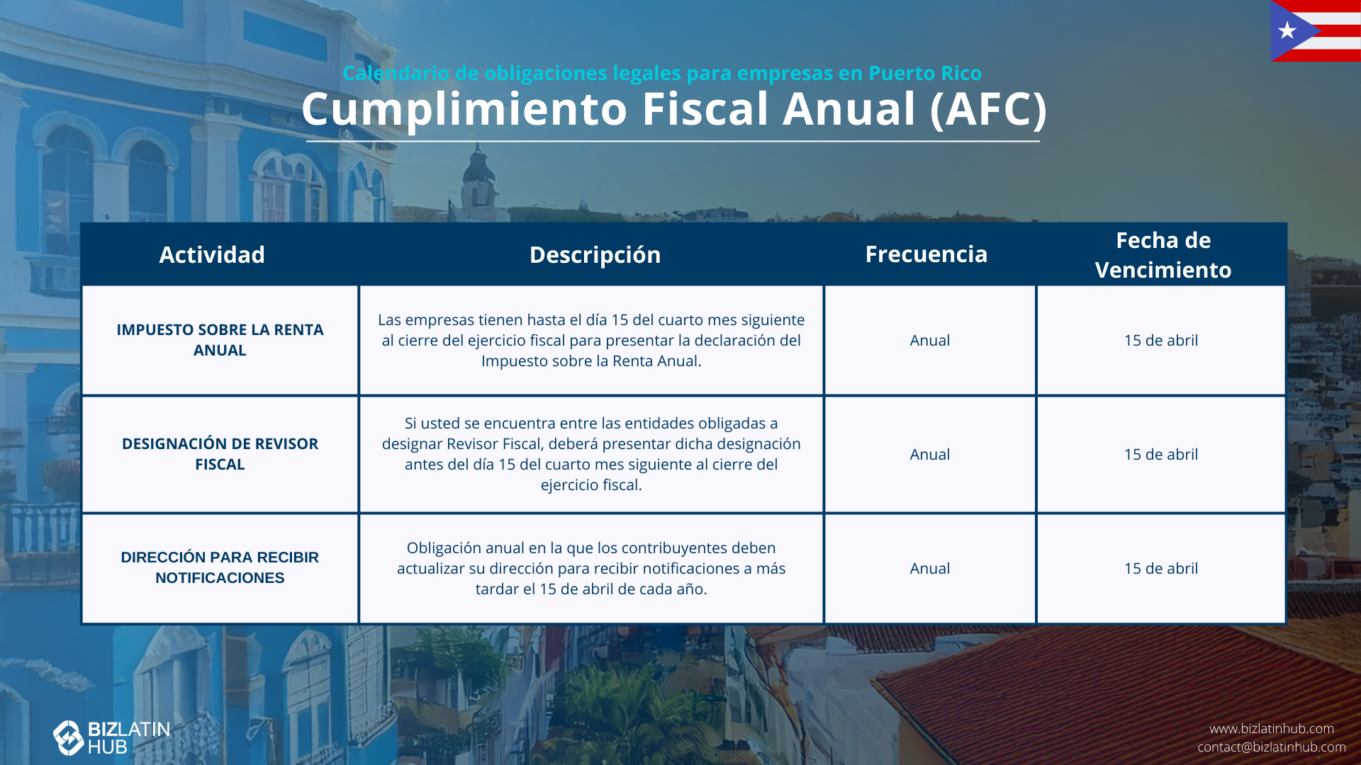 Requisitos clave de cumplimiento anual en Puerto Rico