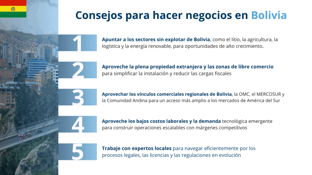 Descubre qué hace de Bolivia un mercado emergente a tener en cuenta en 2025, con información sobre los sectores clave, la configuración jurídica y lo que los inversores extranjeros deben saber antes de iniciar sus operaciones.