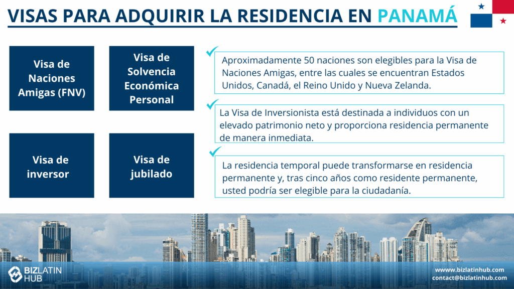 Las tres opciones para recibir un visado de inversor cualificado en Panamá son las siguientes: