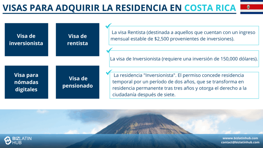 - Realizar una inversión mínima de 150.000 $ (USD), después de que el gobierno costarricense redujera drásticamente la inversión mínima necesaria en agosto de 2021.