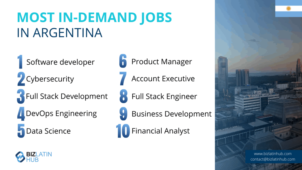 The rate of training often outperforms job creation, meaning that employers have great choice. Many companies are turning to headhunting services Argentina-based firms offer to identify qualified professionals in executive and technical roles. Argentina is a strong market for Full-Stack Developers, Salesforce Developers, and UX/UI Designers thanks to its high education levels and competitive labor costs.