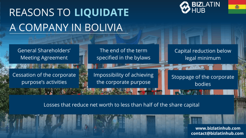 What are the reasons to liquidate a company in Bolivia? | These vary, but the key point is to stay compliant and in good standing with the authorities. |