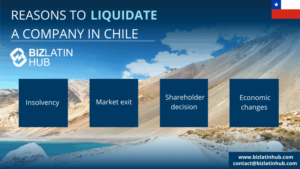 Liquidating a company in Chile involves terminating all commercial activities, redistributing company assets, and deregistering from all relevant authorities. It is commonly pursued due to insolvency, strategic exits, or legal requirements. Once debts are paid and remaining assets distributed, the entity is formally closed.