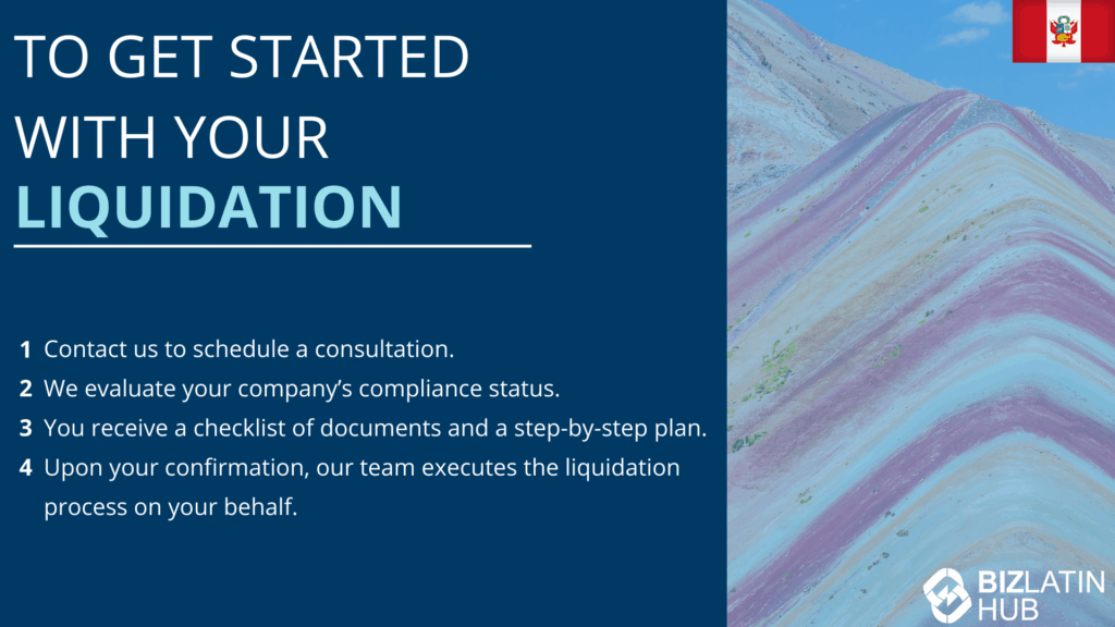 At Biz Latin Hub, our bilingual legal and financial professionals in Peru offer comprehensive support to ensure your liquidation process runs smoothly. We manage every stage—from shareholder approval to registry closure—ensuring compliance with Peruvian law.