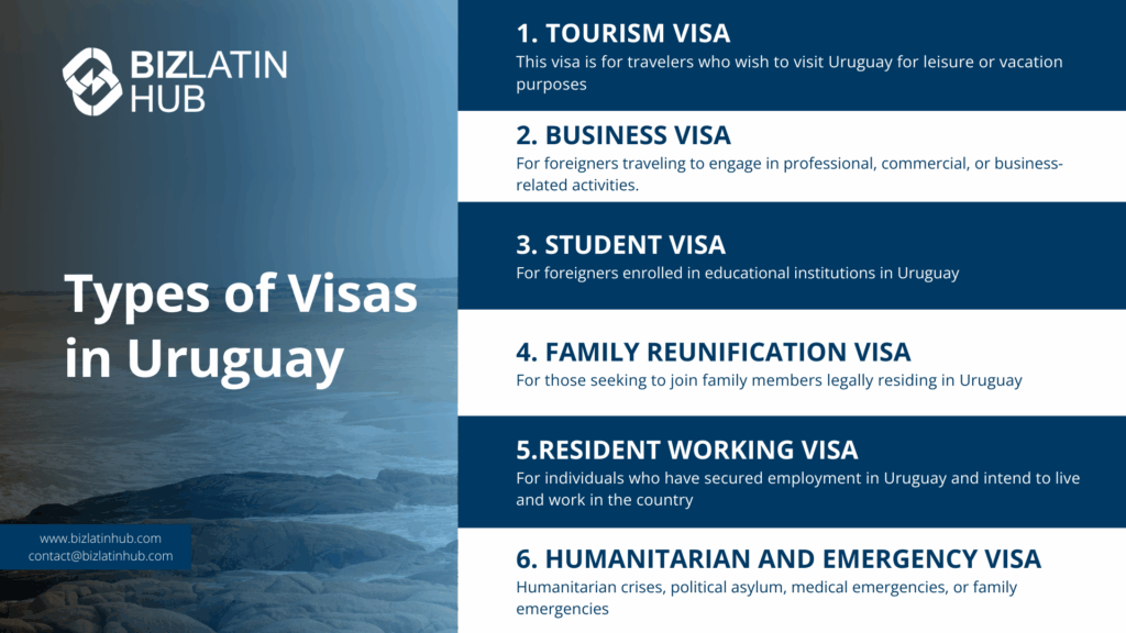 Uruguay offers different types of VISAs to foreign citizens, including the following: