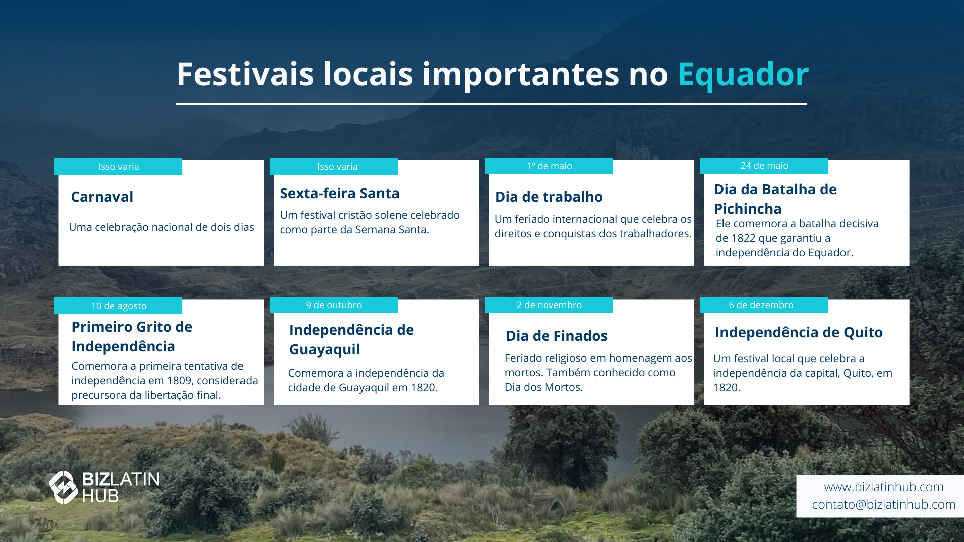 Entre em contato conosco agora ou visite nosso site em bizlatinhub.com para obter mais informações sobre como fazer negócios no Equador.