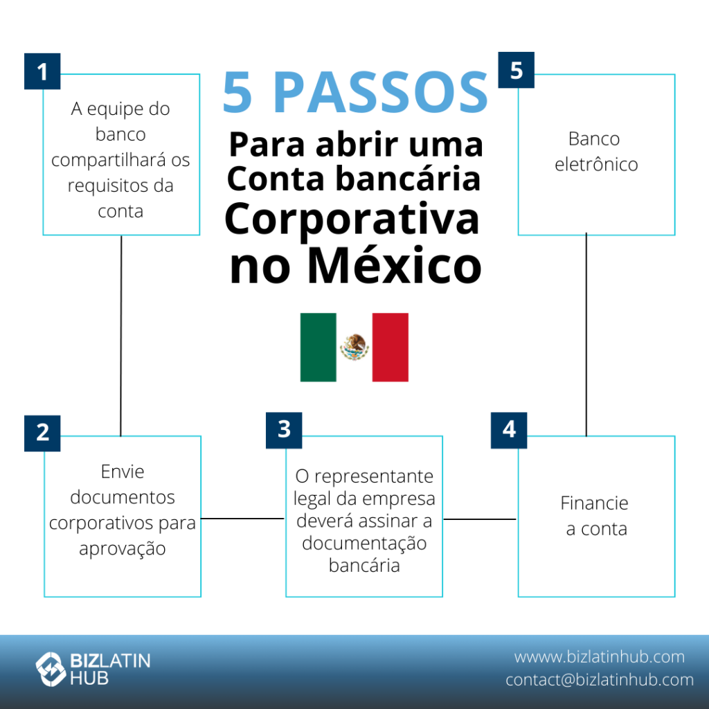 Para abrir uma conta bancária corporativa no México, você deve seguir estas cinco etapas: