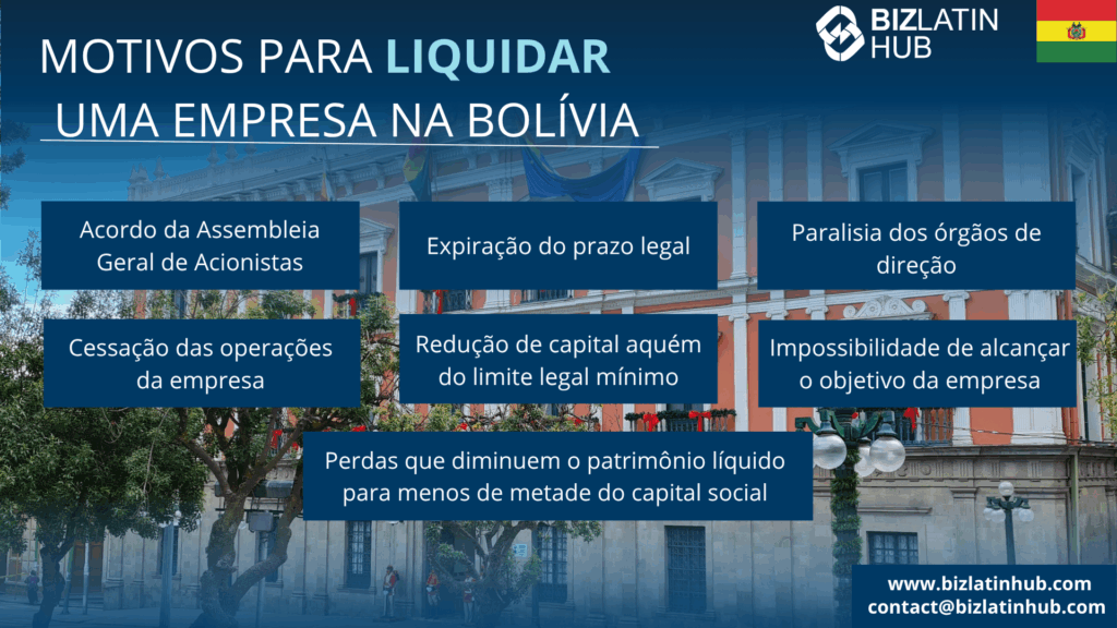 Quais são os motivos para você liquidar uma empresa na Bolívia? | Elas variam, mas o ponto principal é manter a conformidade e a boa reputação perante as autoridades. |