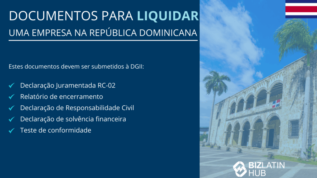 Para liquidar uma empresa na República Dominicana, os seguintes documentos devem ser enviados à DGII: