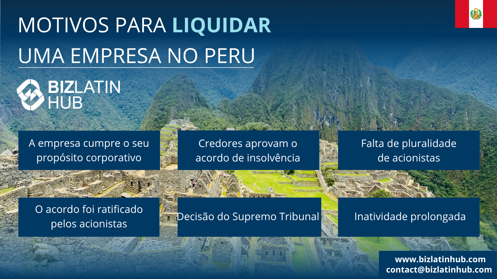 Quais são os motivos para você liquidar uma empresa no Peru?Os motivos incluem: