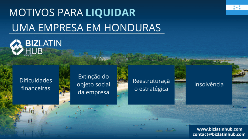 As empresas em Honduras podem optar pela liquidação devido a vários motivos, como dificuldades financeiras, insolvência, expiração do objetivo da empresa ou reestruturação estratégica.