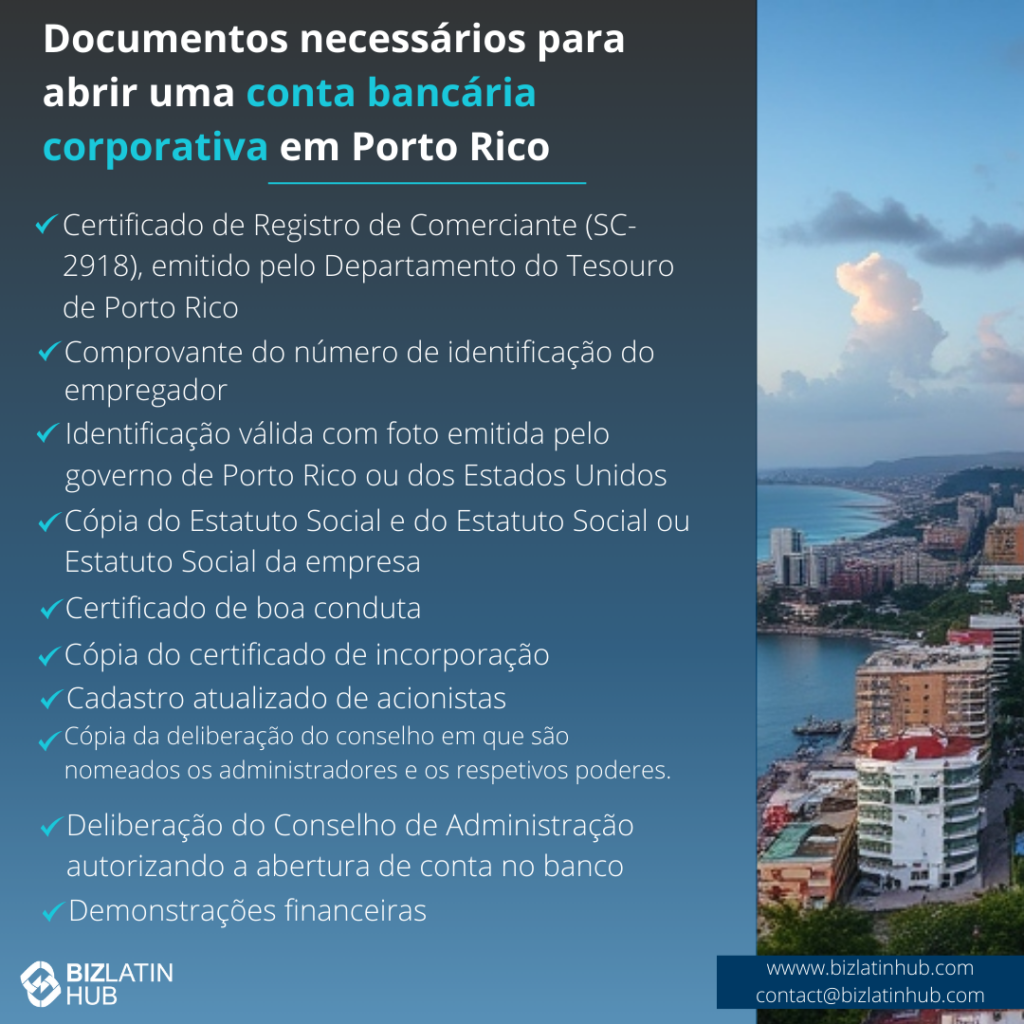 2. Que documentos são necessários para abrir uma conta bancária de empresa em Porto Rico?