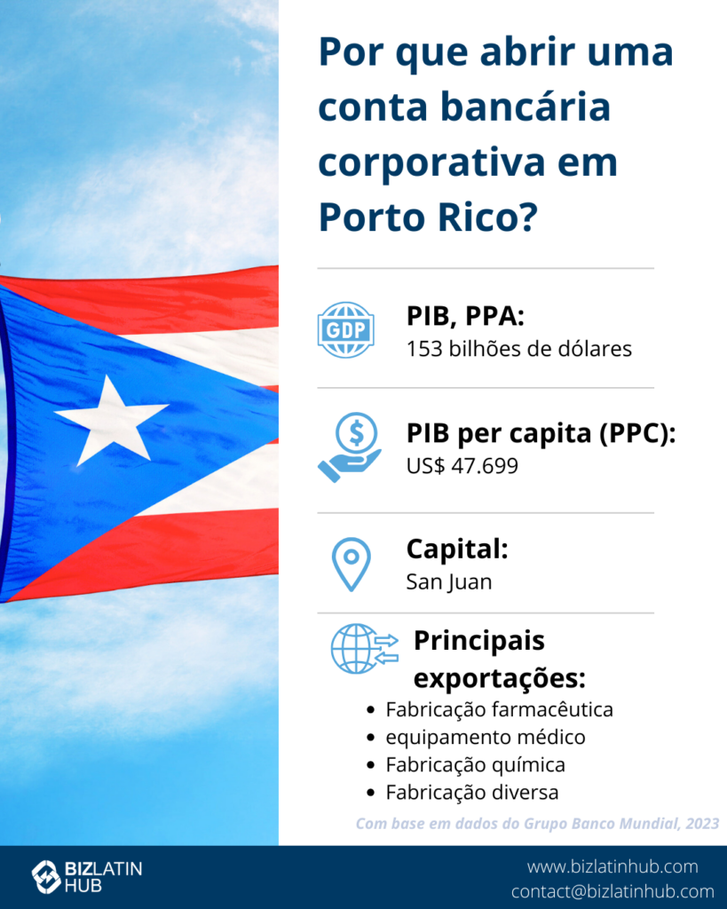 As empresas optam por abrir contas bancárias em Porto Rico devido à estabilidade econômica e política, à capacidade de manter a moeda em dólares americanos, ao sistema tributário nacional e à privacidade bancária.