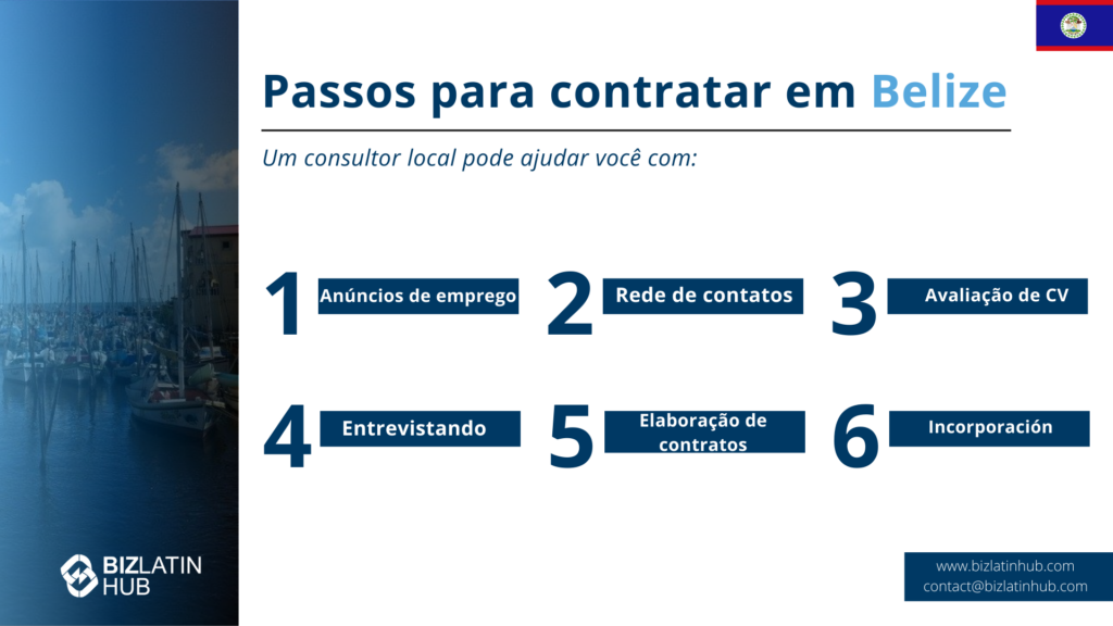 Passos para contratar em BelizeUm consultor local pode ajudar você com: