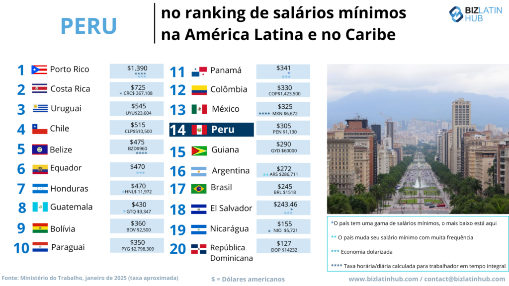 Você está contratando no Peru? Compare seu salário mínimo com o do resto da América Latina