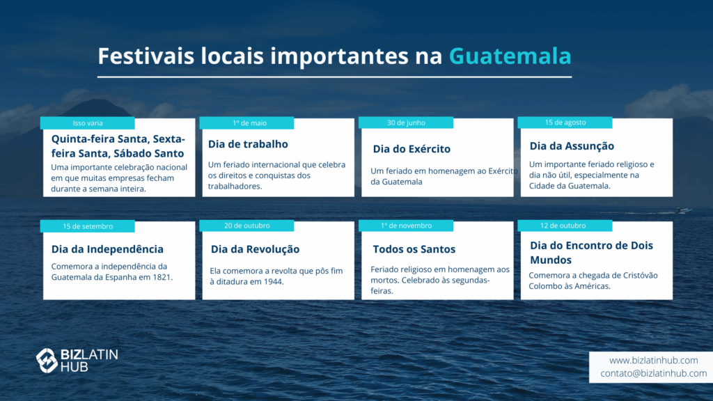 A pontualidade é importante na cultura empresarial da Guatemala? | Ignore os estereótipos e certifique-se de que você faça as coisas na hora certa para causar uma boa impressão. |
