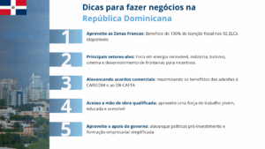 Descubra por que fazer negócios na República Dominicana está ganhando atenção em 2025, com insights sobre a formação de empresas, incentivos ao investimento estrangeiro e vantagens estratégicas.